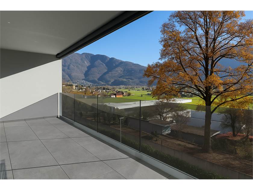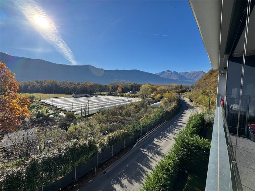 The entrance leads directly into a bright living room with a fully equipped open-plan kitchen and a large built-in wardrobe. The sleeping area offers a spacious bedroom with direct access to the terrace, which enjoys a pleasant open view. The bathroom, with a window, features a shower and a washer-dryer column, perfectly completing the functional spaces.