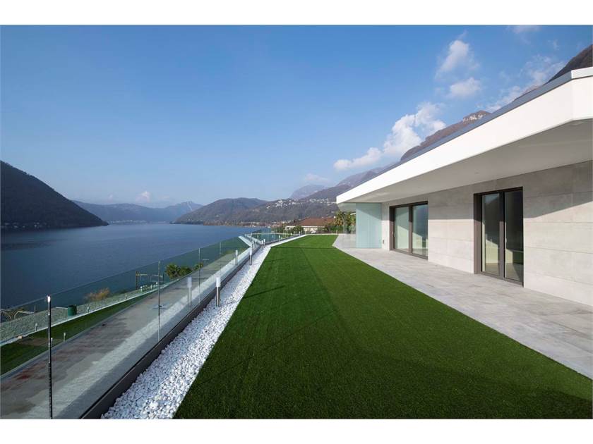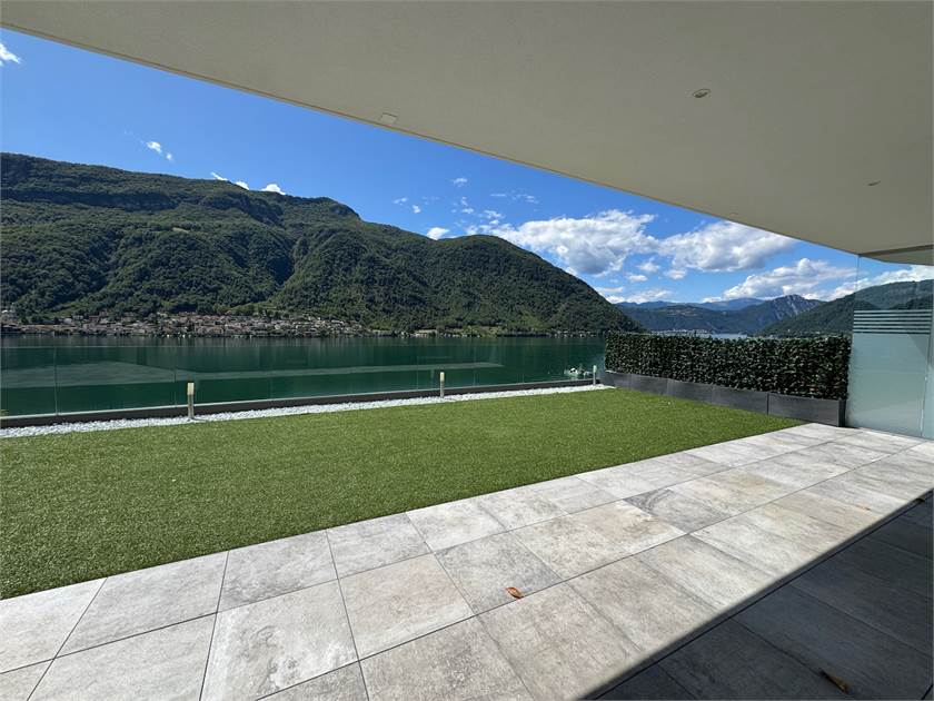 Atrio d'entrata, soggiorno, ampia cucina ben attrezzata, locale dispensa, ed accesso all'ampia terrazza di 72 mq ed al giardino privato con magnifica vista lago.