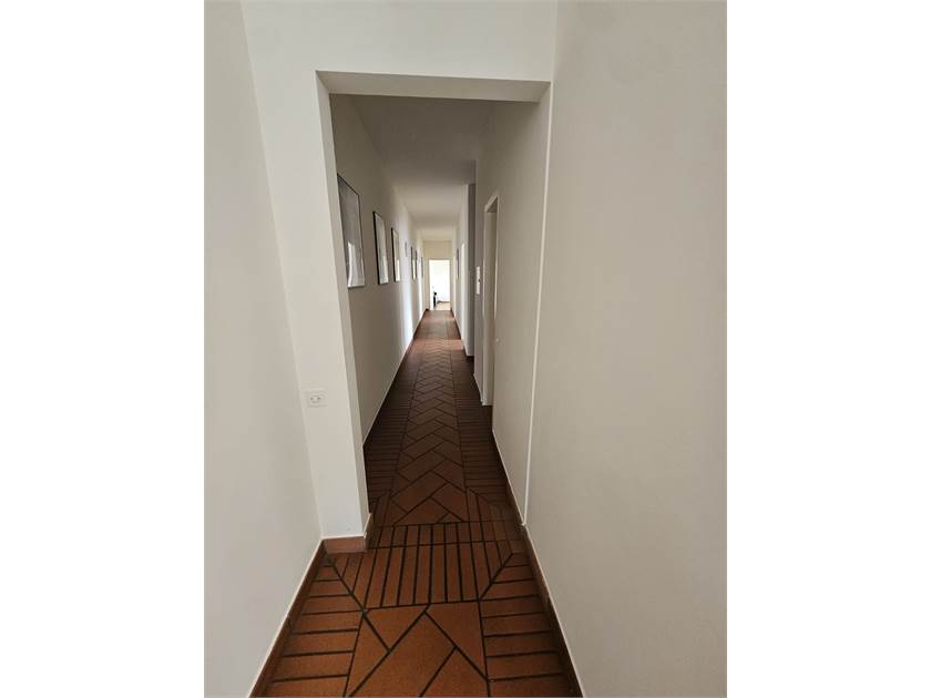 Distribuzione degli spazi: ingresso dal vano scala, ampia sala open space, 3 uffici separati, cucina attrezzata, corridoio, doppi servizi.