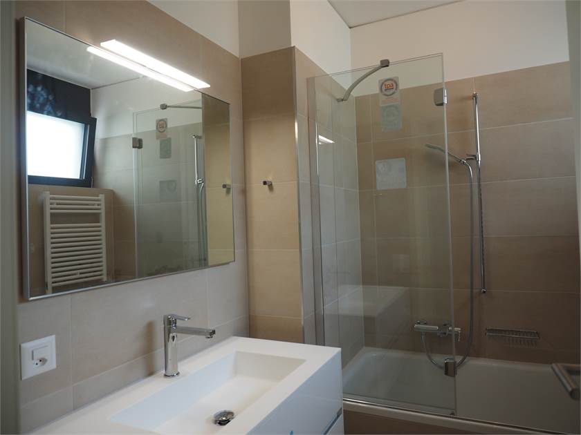 L’appartamento è accessibile dall'autorimessa, con l'ascensore dimensionato e attrezzato per disabili; situato al secondo piano, è composto da una zona d'ingresso con armadio a muro, una luminosa zona giorno con ampio balcone e locale esterno annesso, una cucina completamente attrezzata, due spaziose camere da letto, un servizio con vasca, un servizio con doccia con predisposizione per lavatrice e asciugatrice.