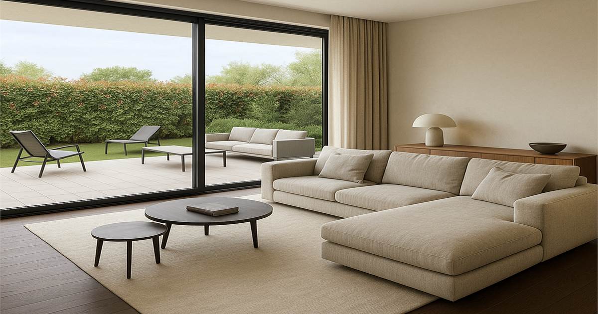 * Soggiorno con affaccio sul portico e giardino privato