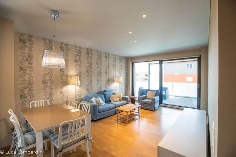 Ampio soggiorno con cucina a vista e accesso diretto a due balconi