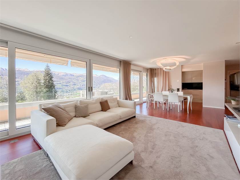 the living area consists of a spacious living room and windows overlooking a large terrace with lake view, a fully equipped eat-in kitchen.